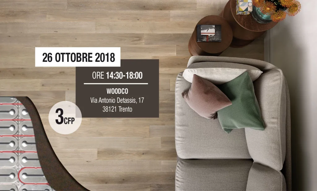 L’evento mira a fornire conoscenze sulla relazione tra parquet e sistemi radianti a pavimento, indicandone potenzialità e criticità. Agli architetti partecipanti verranno riconosciuti n.3 Crediti Formativi Professionali (CFP) dall’Ordine degli Architetti di Trento. Programma Ore 14:30 Accoglienza e raccolta firme Ore 15:00 Inizio dei lavori, introduzione e benvenuto Ore 15:10 I piani di posa riscaldanti […]