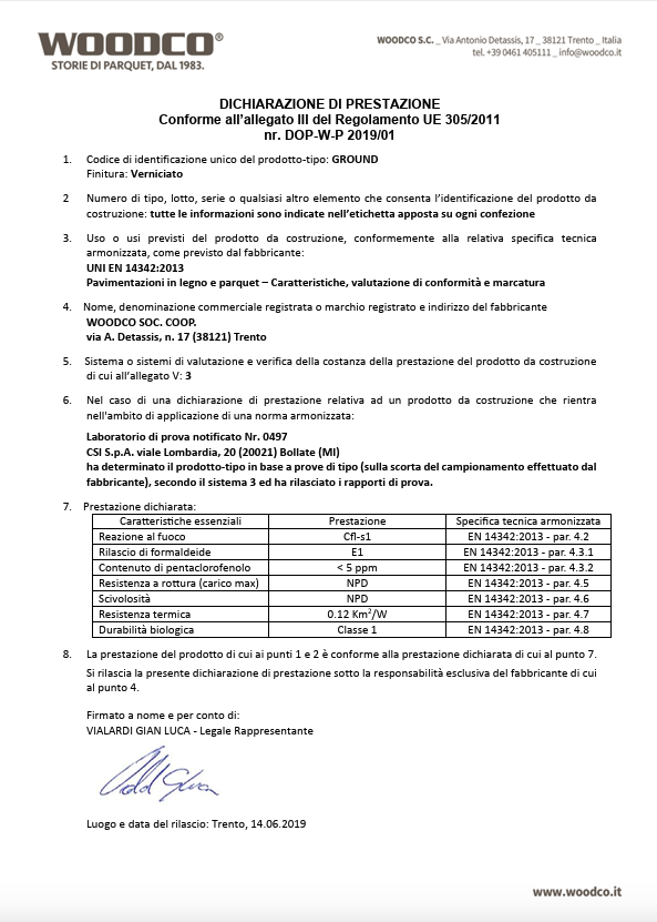 Tutti i parquet Woodco rispondono ai requisiti previsti dalla normativa europea sulla marcatura CE per i pavimenti in legno.