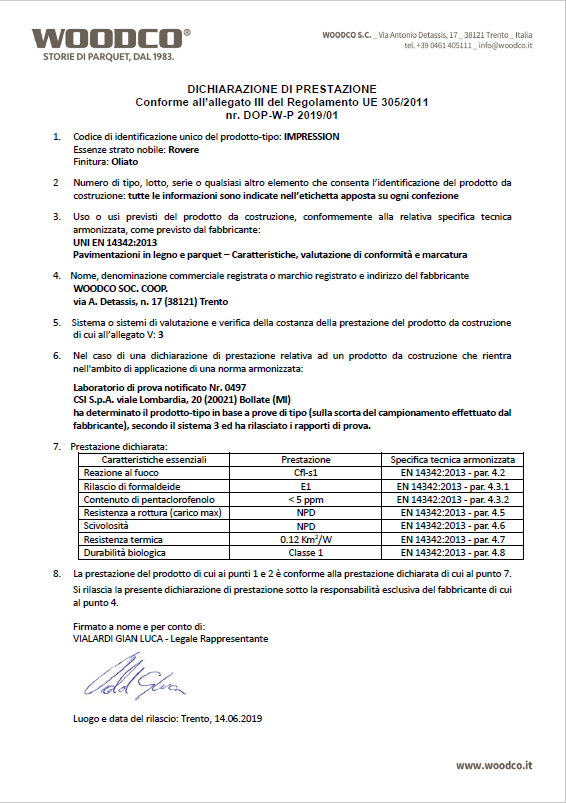 Tutti i parquet Woodco rispondono ai requisiti previsti dalla normativa europea sulla marcatura CE per i pavimenti in legno.