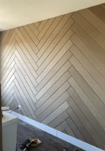 E come sempre, poi, molto dell’impatto visivo dipende dalla posa e dall’orientamento che vorrai dare al tuo parquet e poi, in particolare, al tuo rivestimento a parete, in sede di posa.