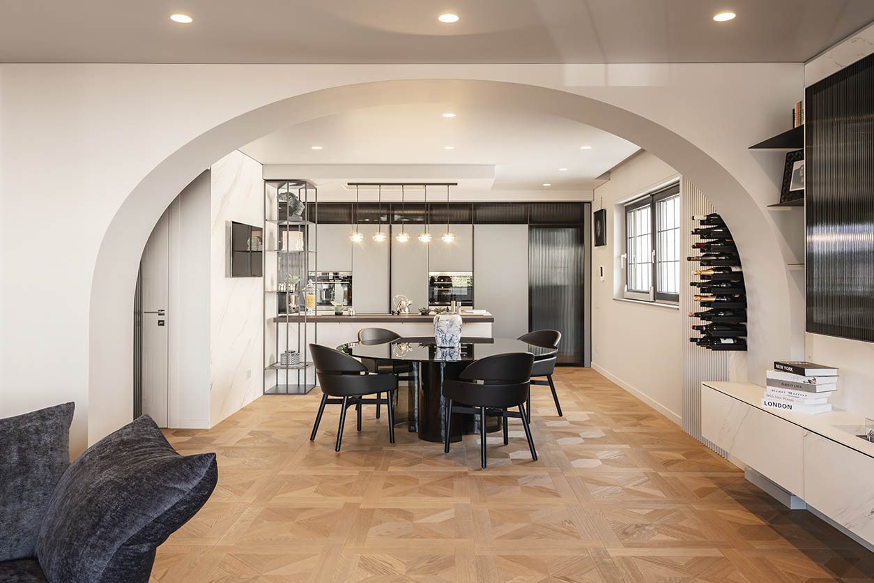 Nel progetto d’interni firmato dallo studio Giordano&Partners, la pavimentazione in legno realizzata con le quadrotte Woodco diventa elemento identitario che struttura lo spazio e definisce l’intera esperienza abitativa.